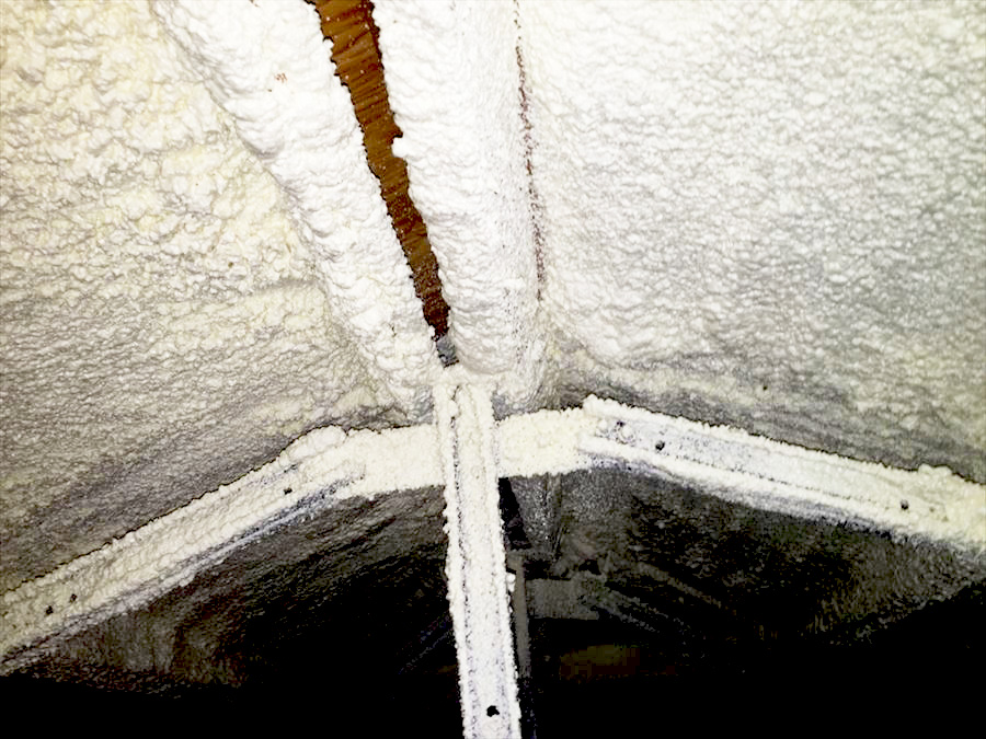 少ない足場を行ったり来たりしながら発泡ウレタンを吹きつけます!